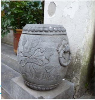 五一路阻停设施现场效果图三 税务东街人行道阻停设施设计方案: 税务东街主要体现了盐税文化,同时涵盖商业、旅游、休闲,整体阻停设施设计以阳刻北宋铜铸的盐税印章的石材为主,以小型仿木花箱为辅,为古街增加了一丝绿意和生机。